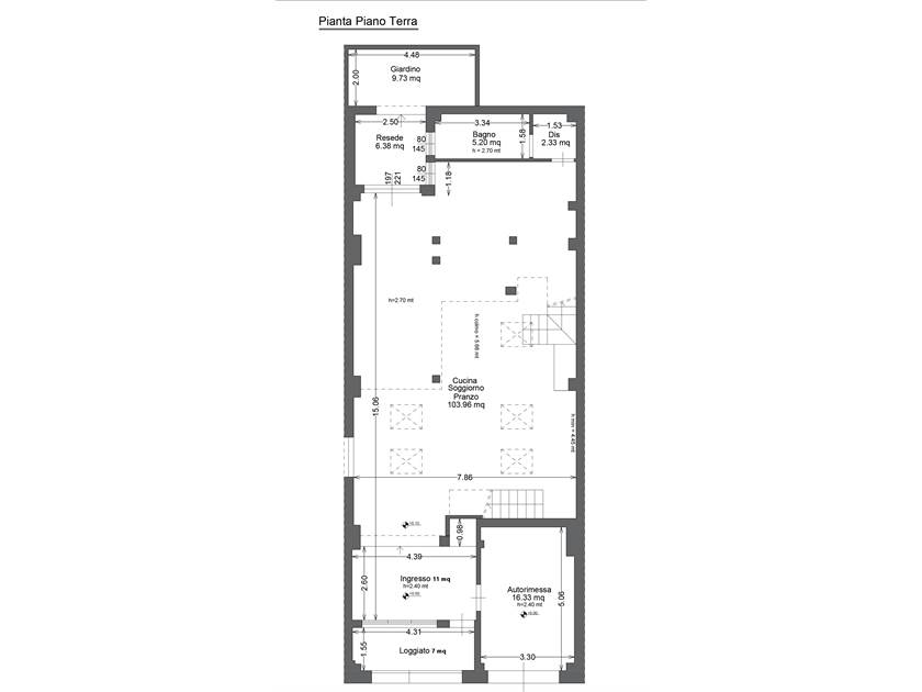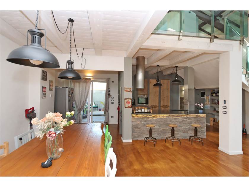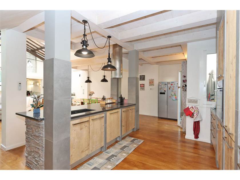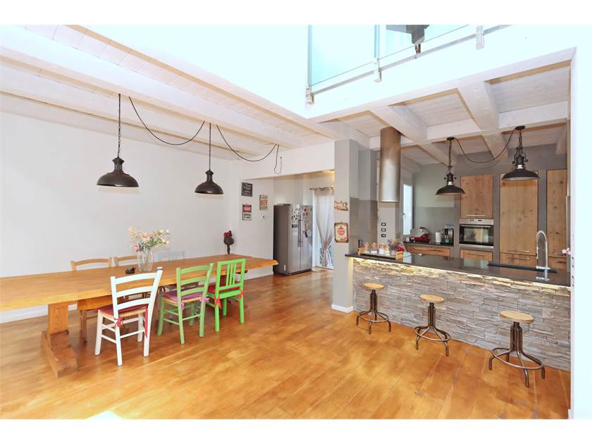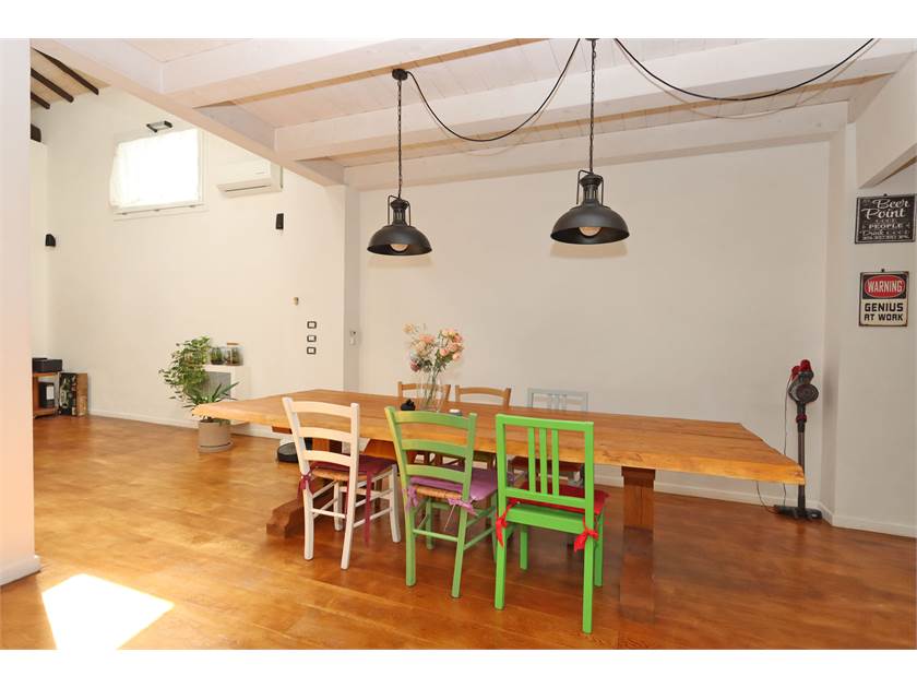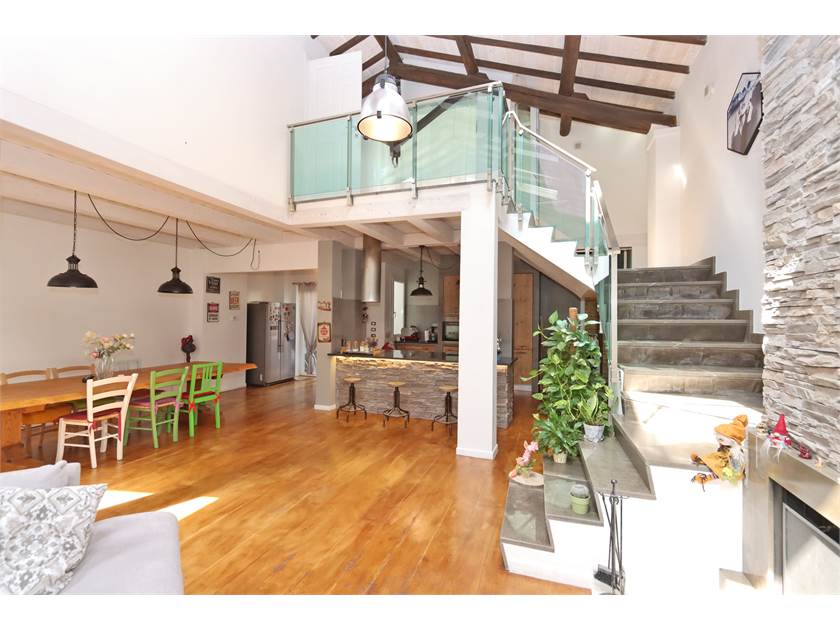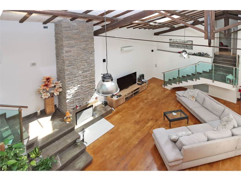 L'immobile si sviluppa su una superficie di 200 mq ed è composto da loggiato con ingresso che affaccia sul caratteristico SALONE openspace di 104 mq con camino e soffitti altissimi dotati di finestre Velux, cucina a vista (costruita con materiali di pregio e compresa nel prezzo) con isola, zona pranzo molto ampia, bagno finestrato, lavanderia e resede posteriore.