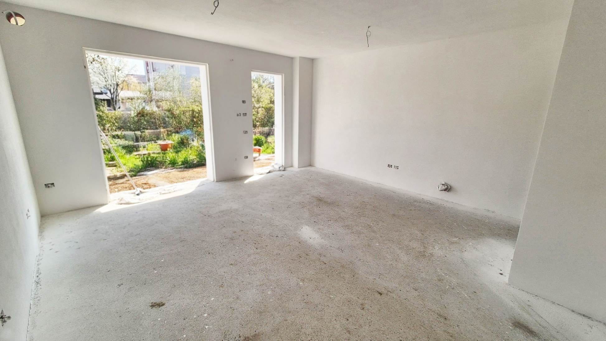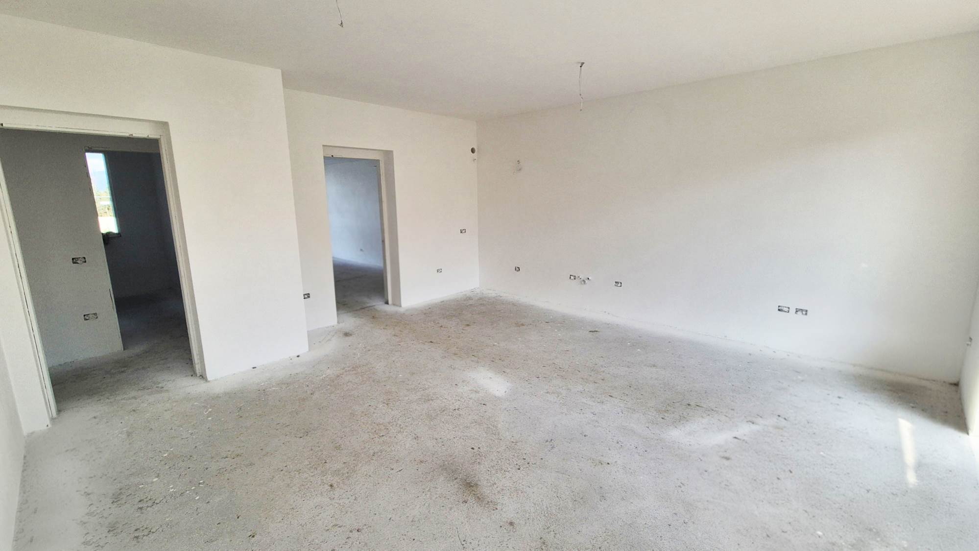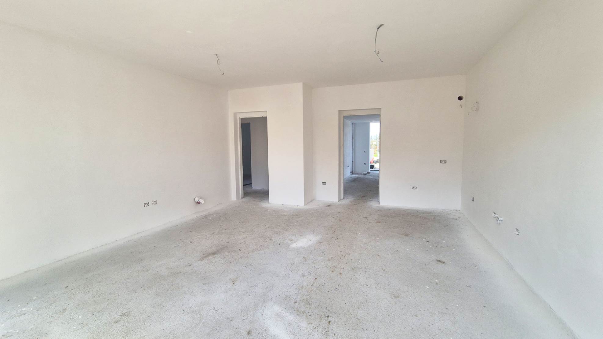 Internamente troviamo un'ampia e luminosa zona soggiorno/cucina di 30 mq, DUE CAMERE MATRIMONIALI, due bagni, garage /rimessa/vano multiuso di 20 mq completamente rifinito e vano tecnico/lavanderia. Possibilità di realizzare la terza camera. Ampio parcheggio esterno all'abitazione.