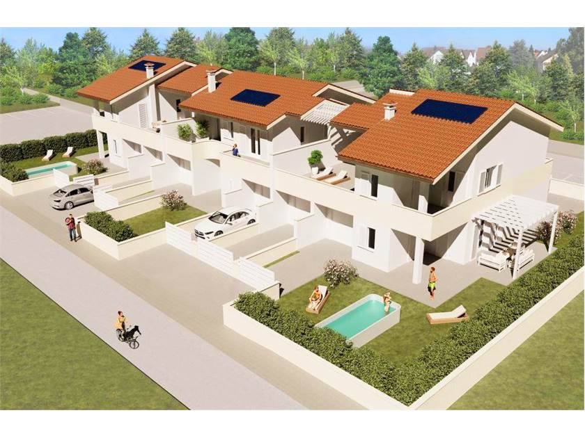 Gli appartamenti saranno dotati di ventilconvettori Inverter (caldo-freddo) alimentati da pompa di calore elettrica da 6 Kw coadiuvata da pannelli fotovoltaici, copertura del tetto microventilata e ventilazione meccanica controllata che uniti ad infissi con doppio vetro-camera basso emissivo attribuiscono all'immobile la classe energetica più elevata (A4).