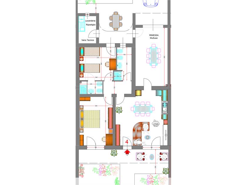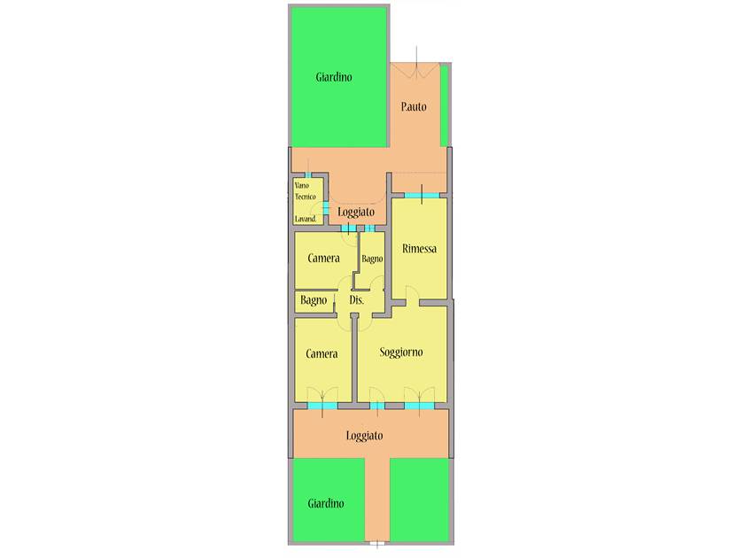 L'appartamento è completamente indipendente con accesso pedonale e carrabile, ampio giardino fronte-retro, loggiato e posto auto interno alla proprietà.