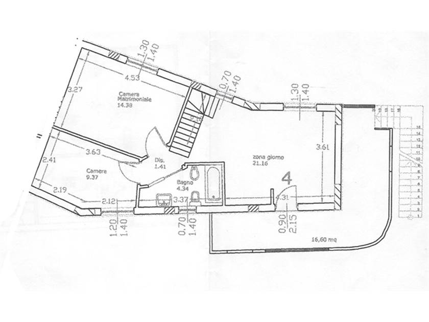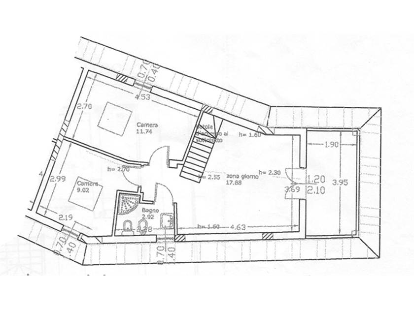 L'immobile è sviluppato su due livelli ed è composto da soggiorno con angolo cottura, 2 camere (matrimoniale + singola), terrazzo e bagno finestrato al primo livello.