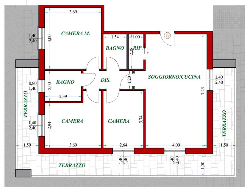 L'immobile sarà composto da luminoso salone openspace di 31 mq con angolo cottura, tre camere da letto (matrimoniale + media + singola di 10 mq), due bagni e stanza ripostiglio/lavanderia, il tutto circondato da terrazzo su tre lati di 38 mq.