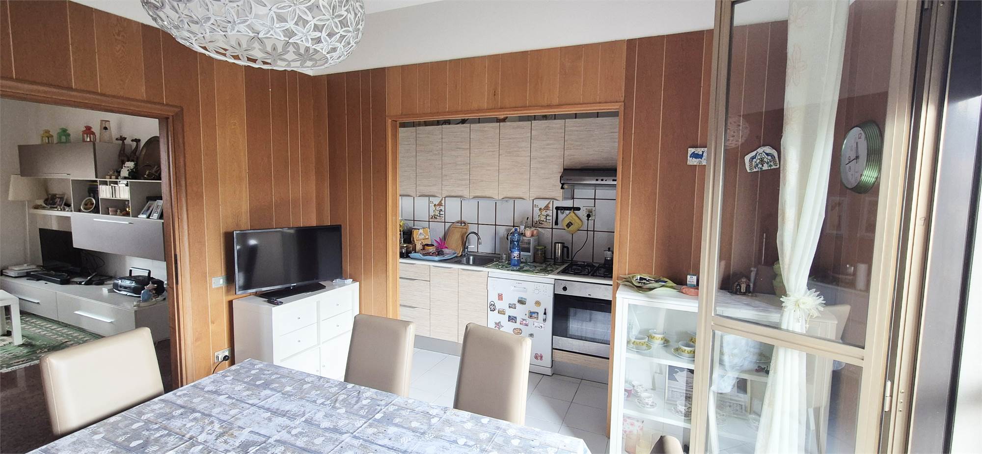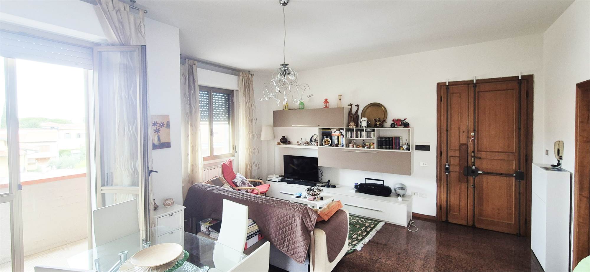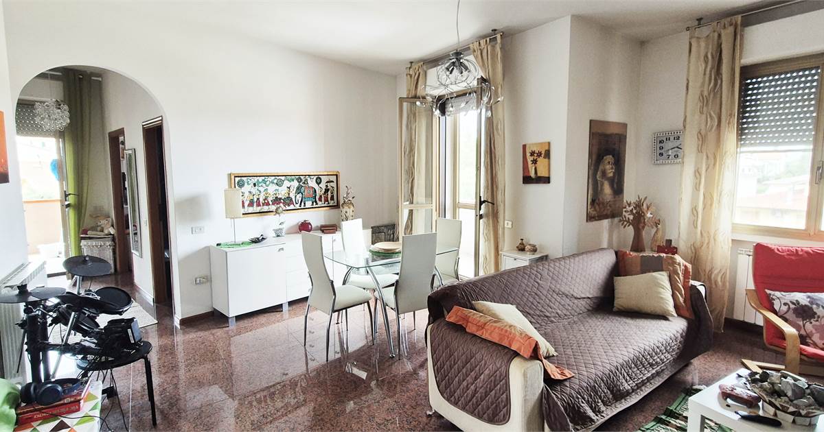 L'immobile (circa 96 mq) si presenta in buone condizioni ed è composto da ingresso su ampio soggiorno, sala pranzo, cucinotto, bagno, 2 camere matrimoniali e 3 terrazzi.