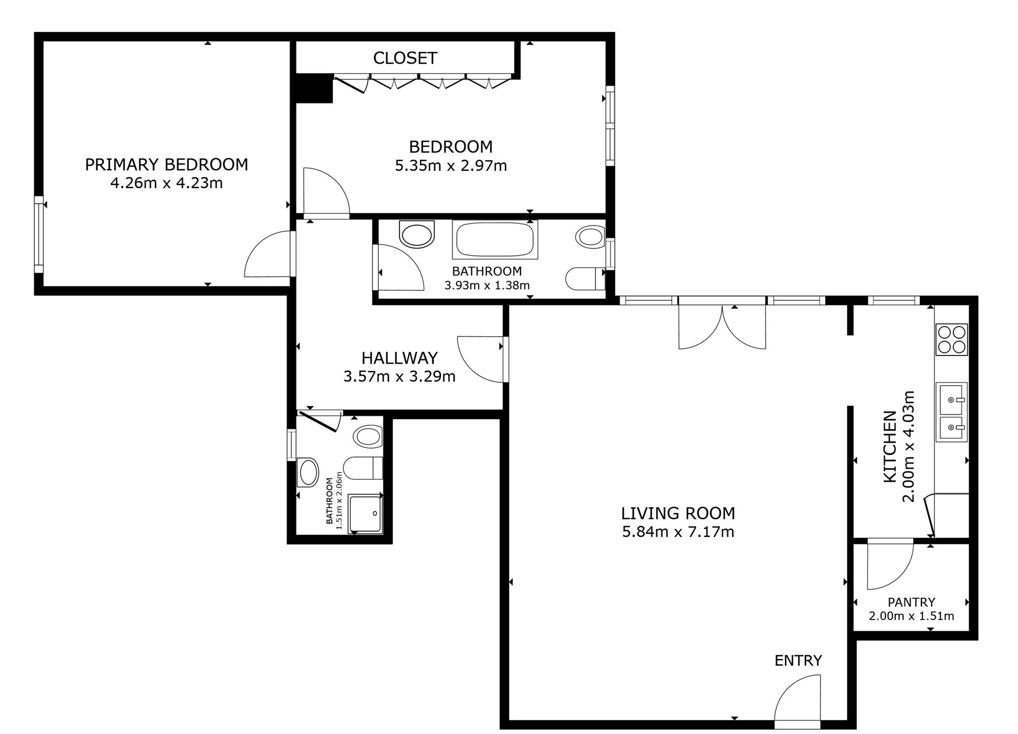 L'immobile è composto da ampio soggiorno-pranzo di circa 40 mq con accesso al terrazzo, cucinotto, ripostiglio, disimpegno notte, 2 ampie camere e 2 bagni.