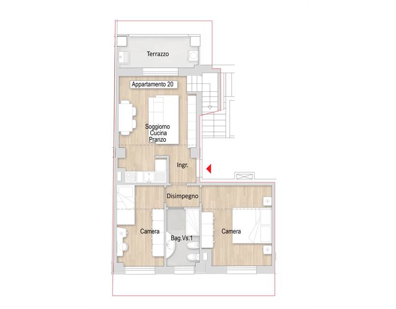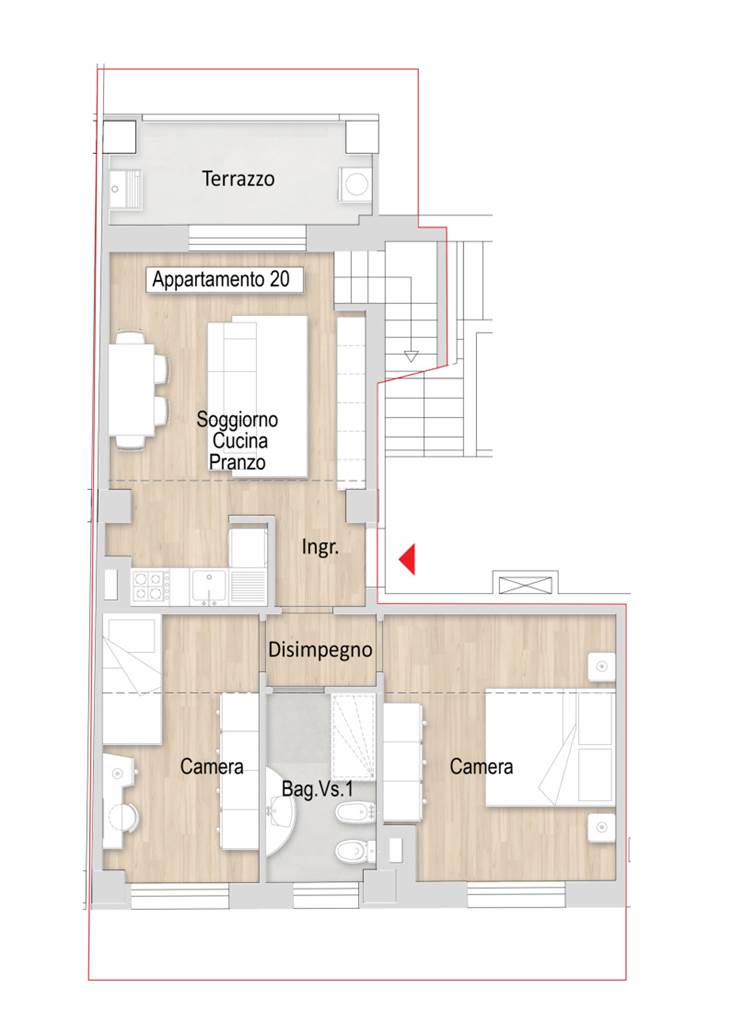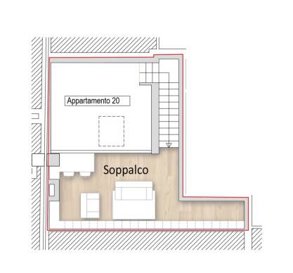 L'appartamento di circa 65 + 26 mq sarà composto da ingresso su soggiorno con angolo cottura, terrazzo a loggia di circa 7 mq , 2 camere (matrimoniale + singola), bagno e CARATTERISTICO SOPPALCO DI CIRCA 26 MQ con affaccio sulla zona giorno. Inoltre completerà la proprietà un ampio e comodo garage di circa 21 mq ubicato al piano terra.