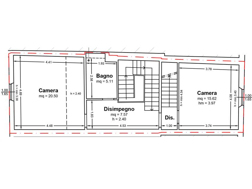 Al piano primo troviamo 2 grandi camere matrimoniali, un disimpegno e un bagno.