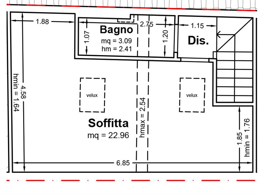 Infine al piano secondo luminosa soffitta con bagno ideale anche come terza camera.