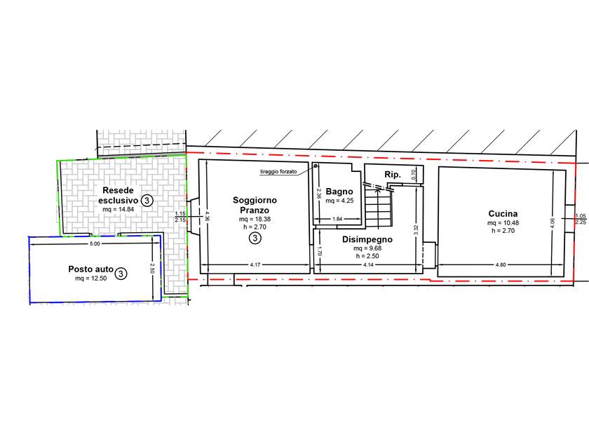 L'immobile fa parte di un piccolo condominio ed è composto da piccola resede anteriore di circa 15 mq, soggiorno, disimpegno, cucina abitabile, bagno e ripostiglio al piano terra.