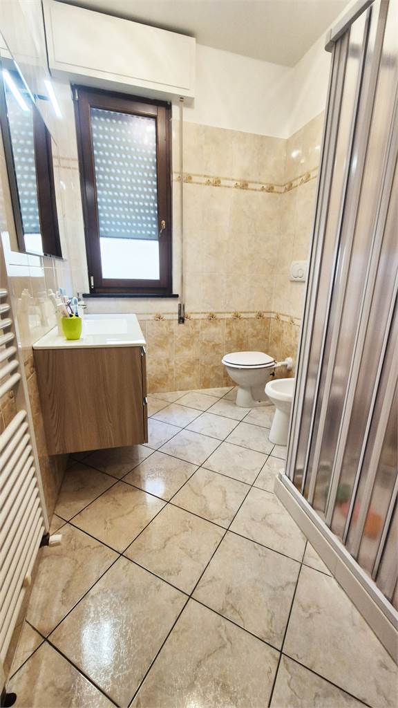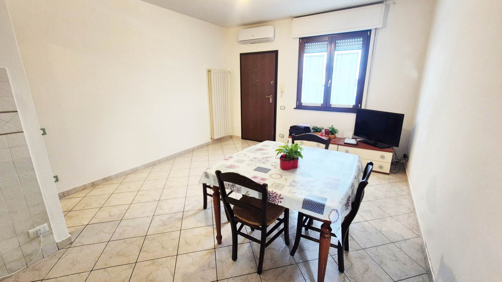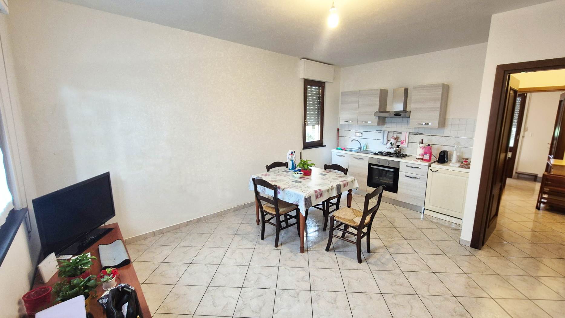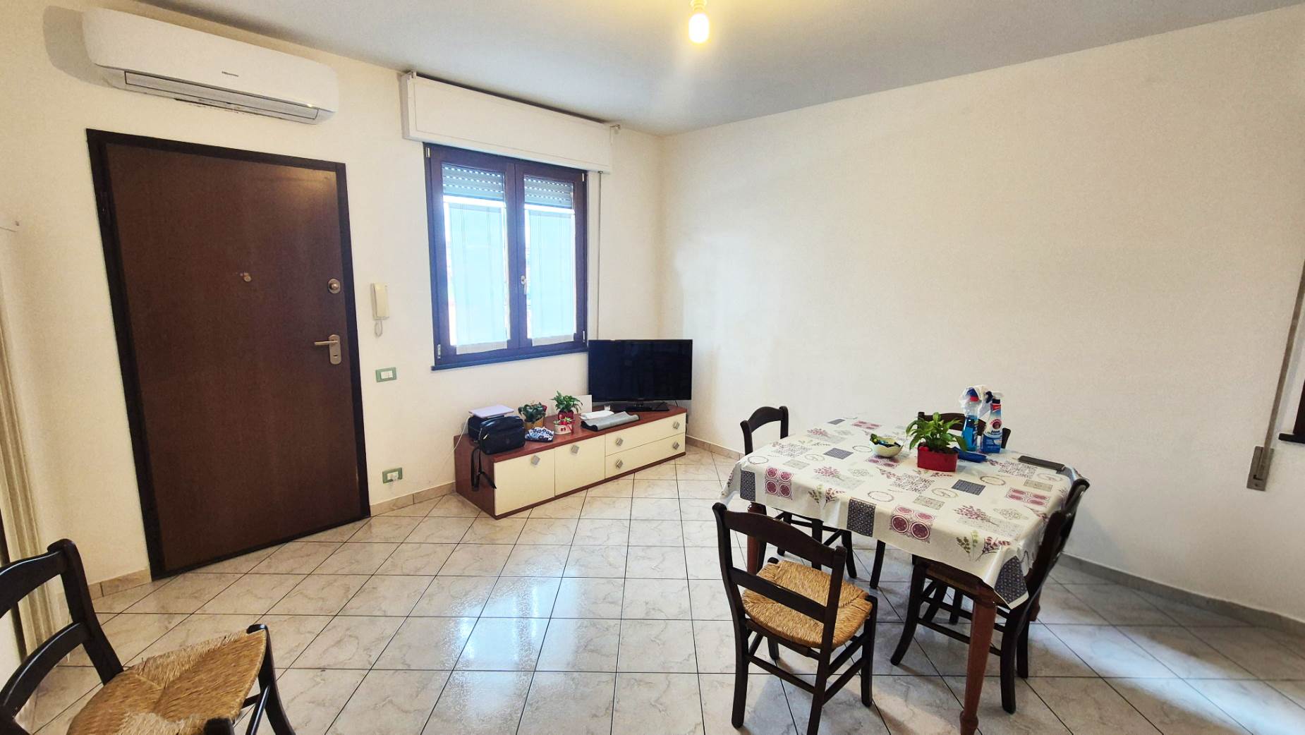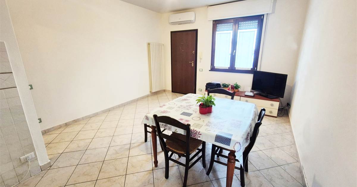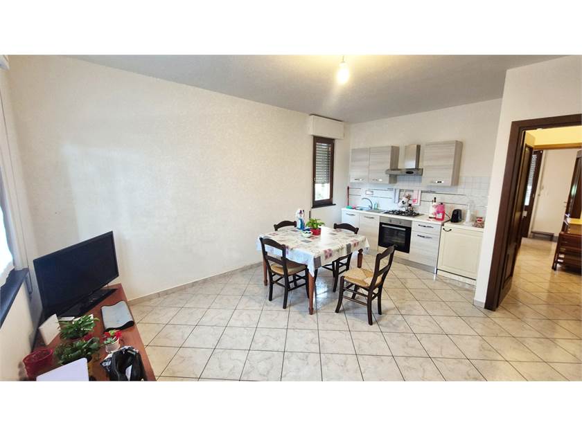 L'appartamento è composto da soggiorno con angolo cottura, camera matrimoniale, camera singola, bagno finestrato disimpegno e ripostiglio/lavanderia.
