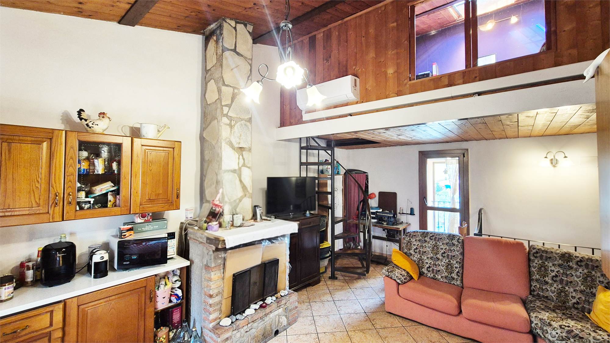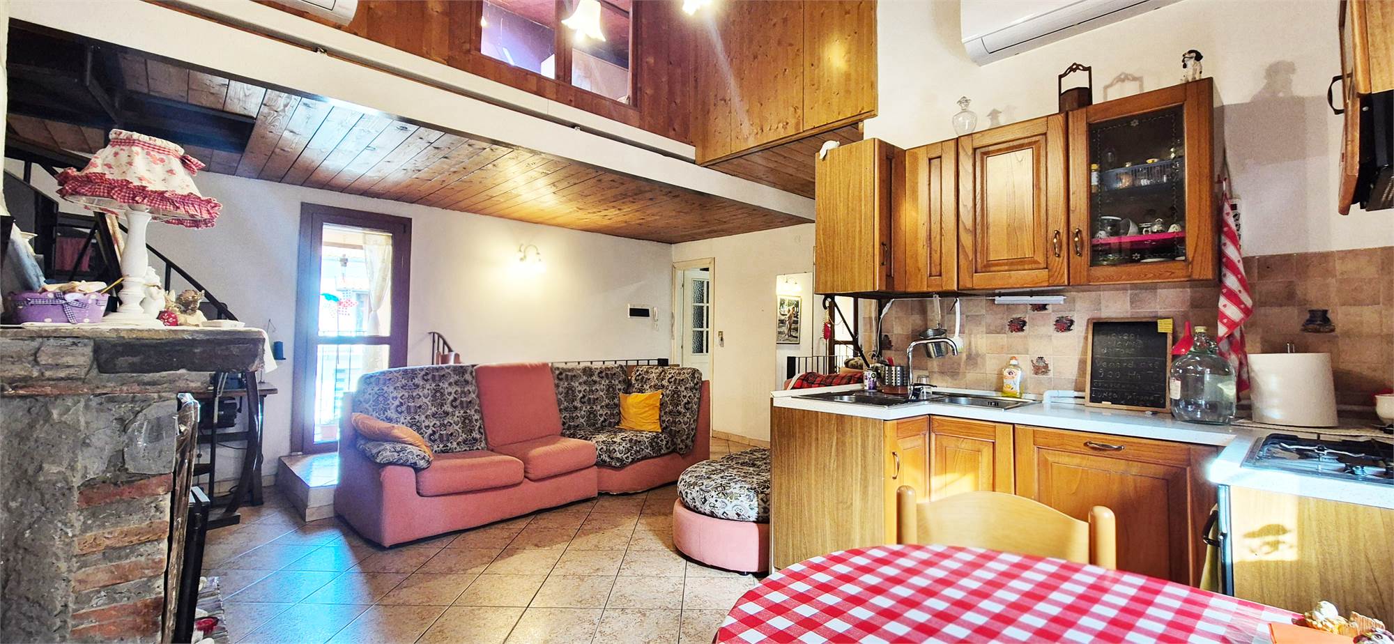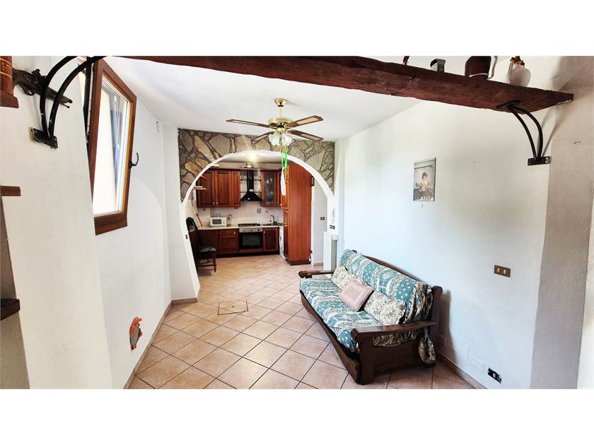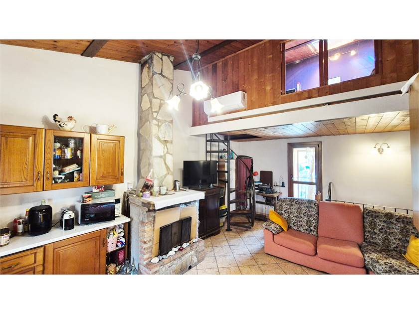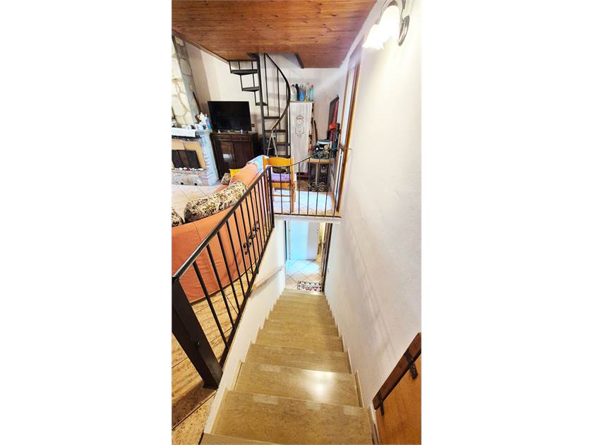 - PRIMO PIANO: appartamento composto da soggiorno con camino ed angolo cottura, camera matrimoniale, studio/camerina, bagno e soppalco con accesso dal soggiorno dove è stata ricavata un'ulteriore camera.