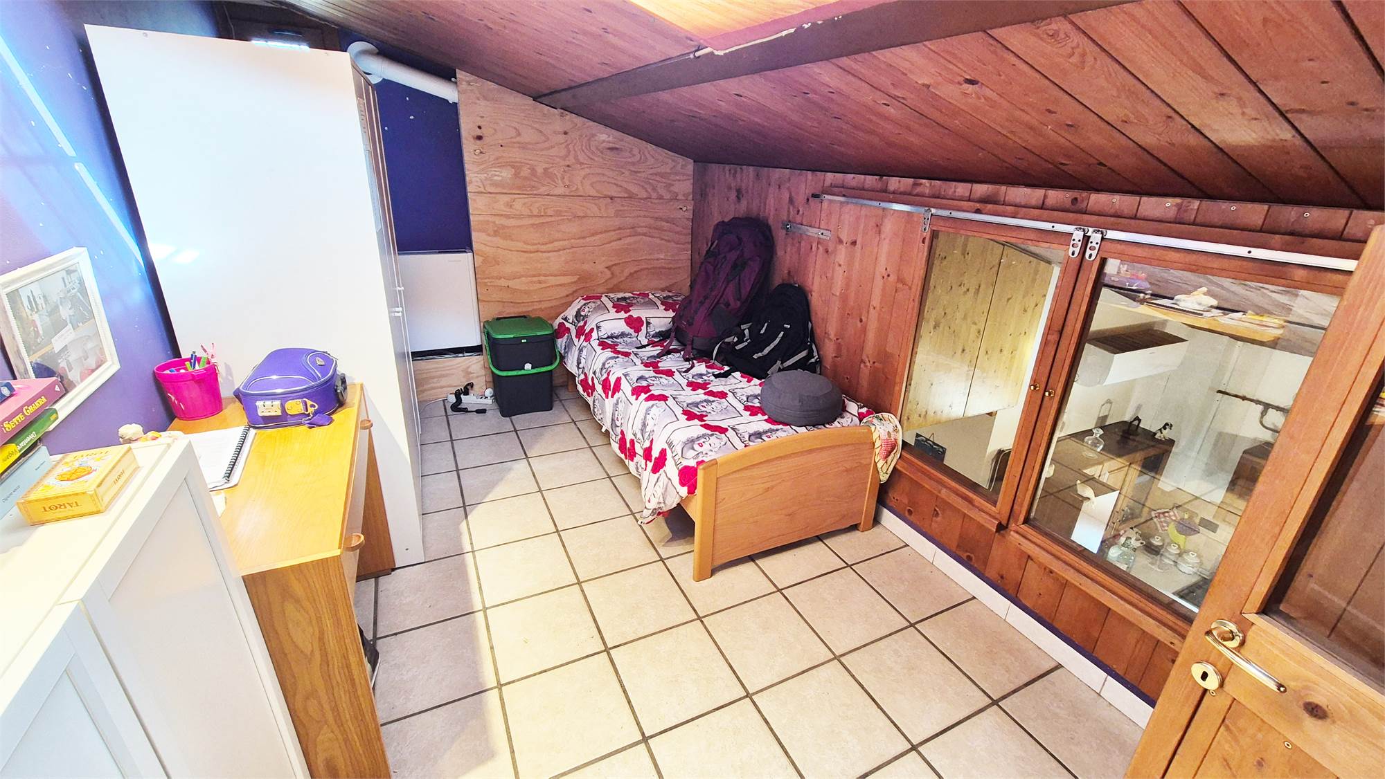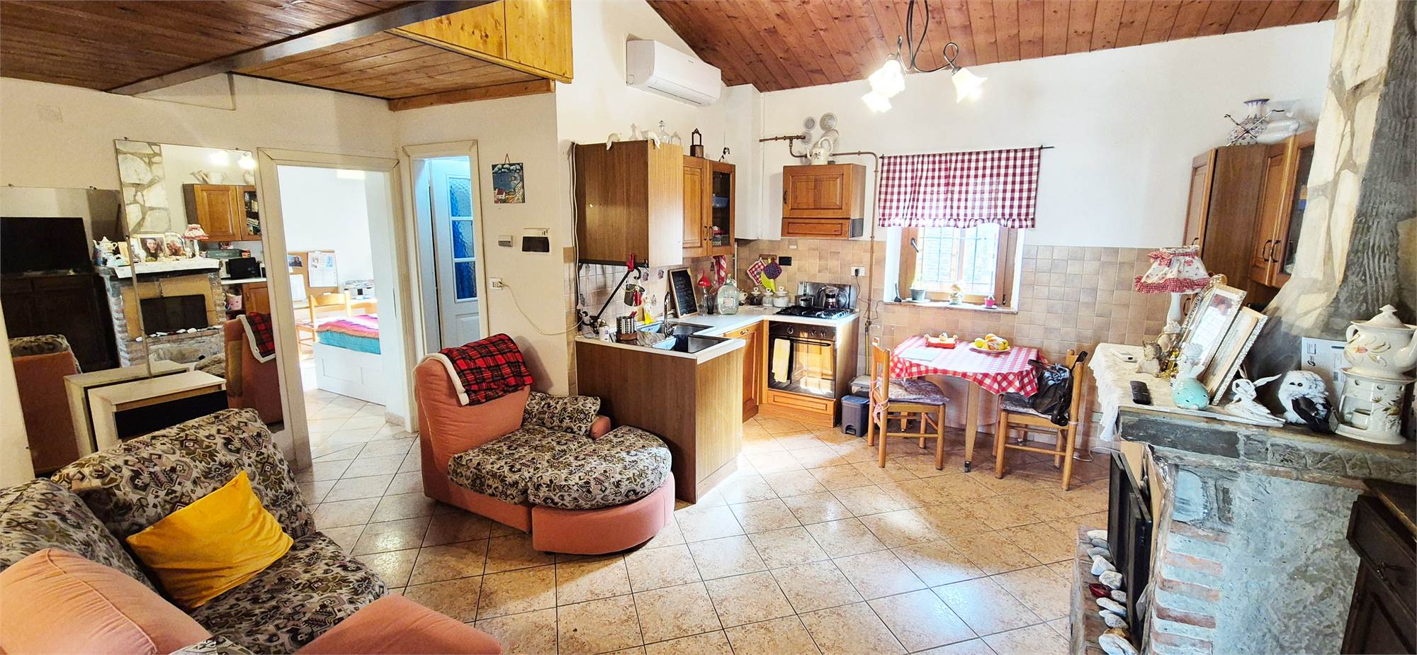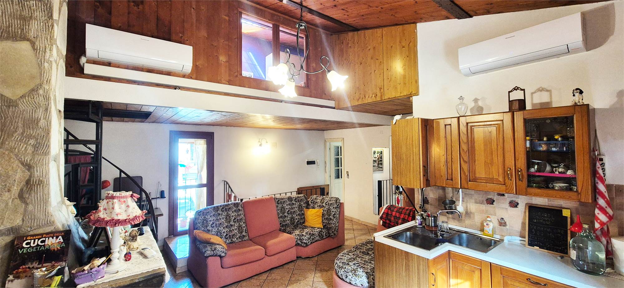 - PRIMO PIANO: appartamento composto da soggiorno con camino ed angolo cottura, camera matrimoniale, studio/camerina, bagno e soppalco con accesso dal soggiorno dove è stata ricavata un'ulteriore camera.