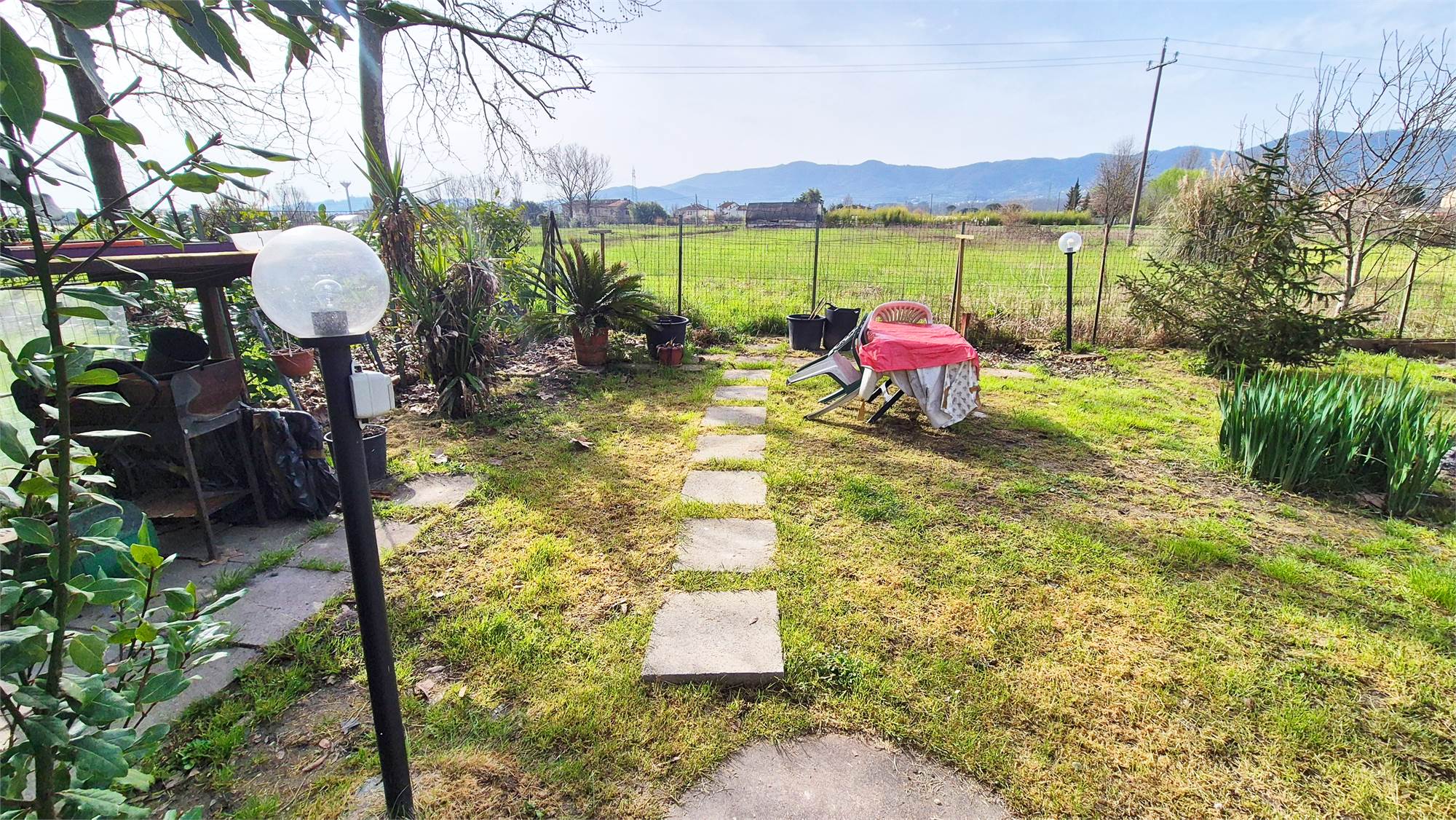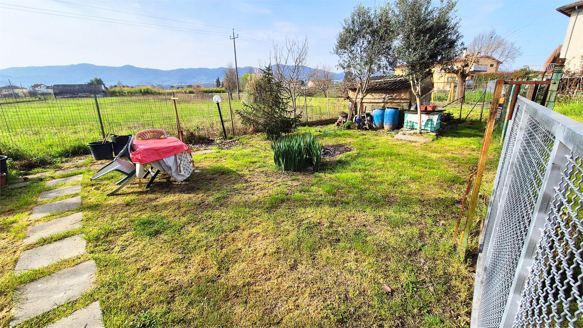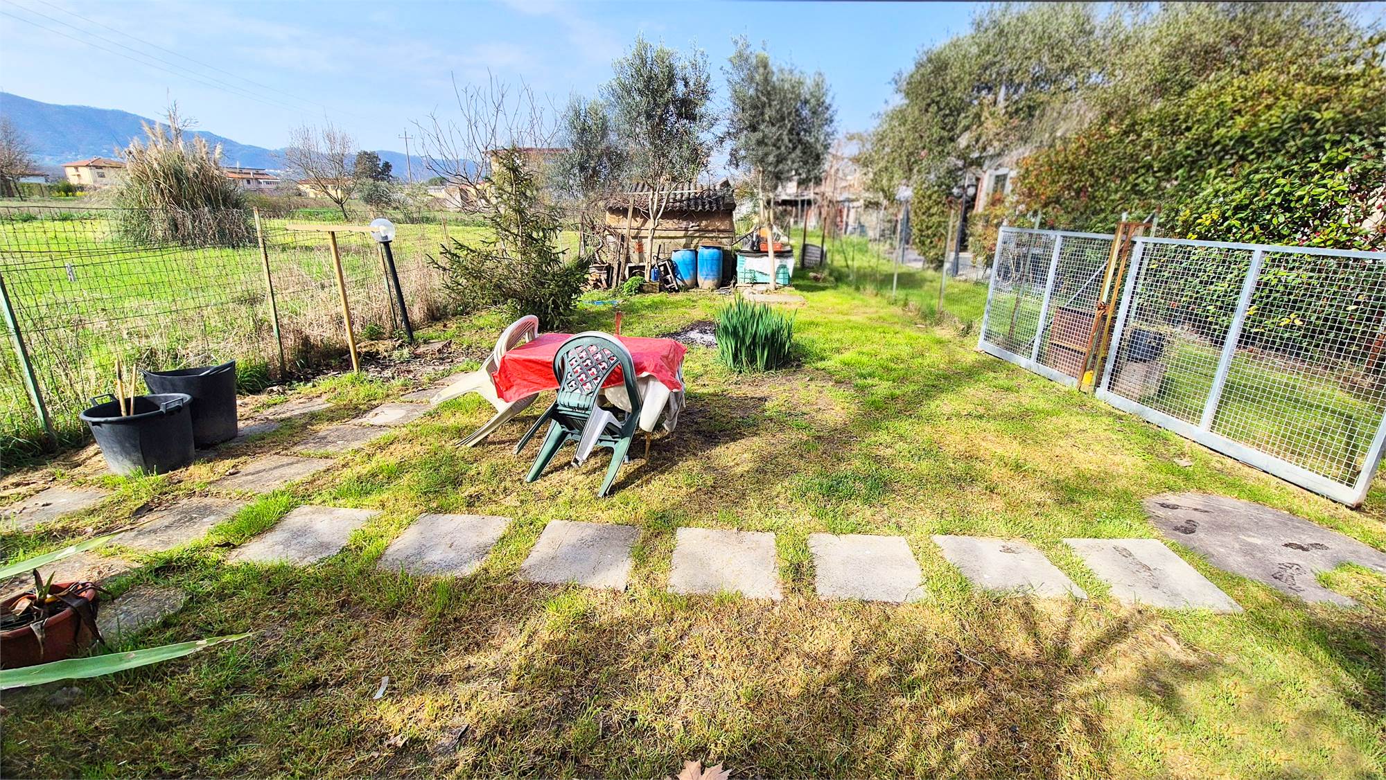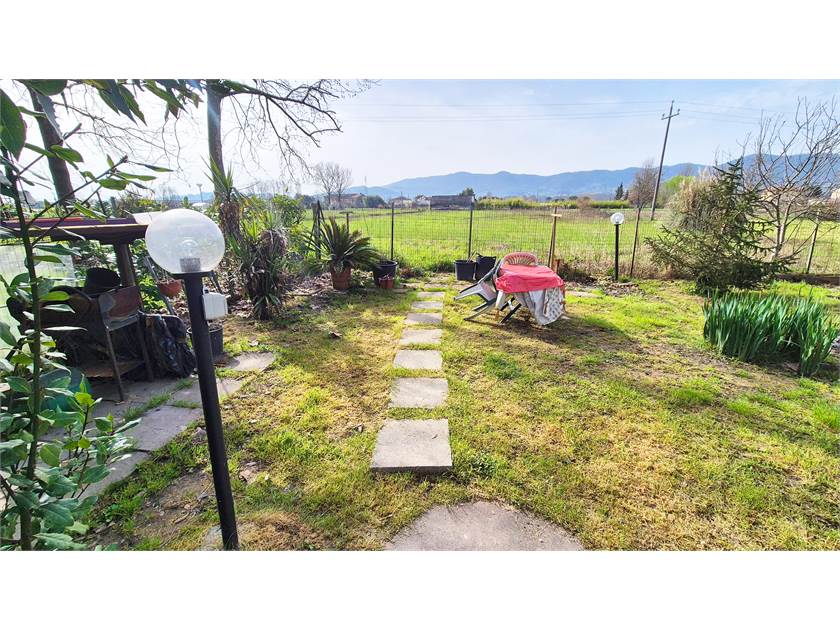 Completano la proprietà un posto auto ed un giardino esclusivo di 180 mq adiacente all'abitazione, completamente recintato dotato di pozzo, acqua e corrente.